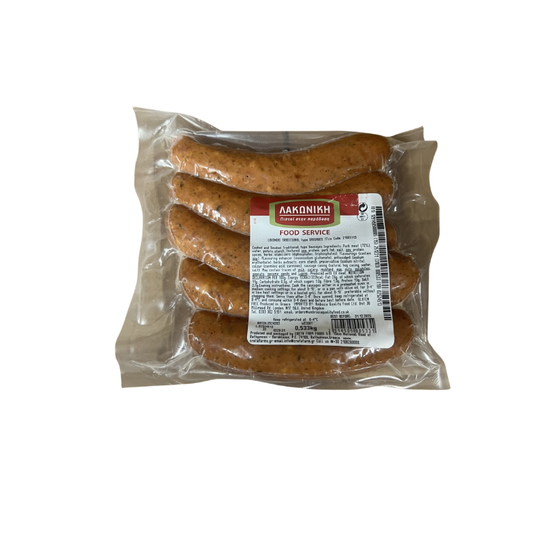 Cooking instructions: Cook the sausages either in a preheated oven in medium cooking settings for about 8-10′, or in a pan with olive oil for 3-4′ in low heat settings or in a heated grill for about 8-10′, preferably without chopping them. Serve them after 3-4′.