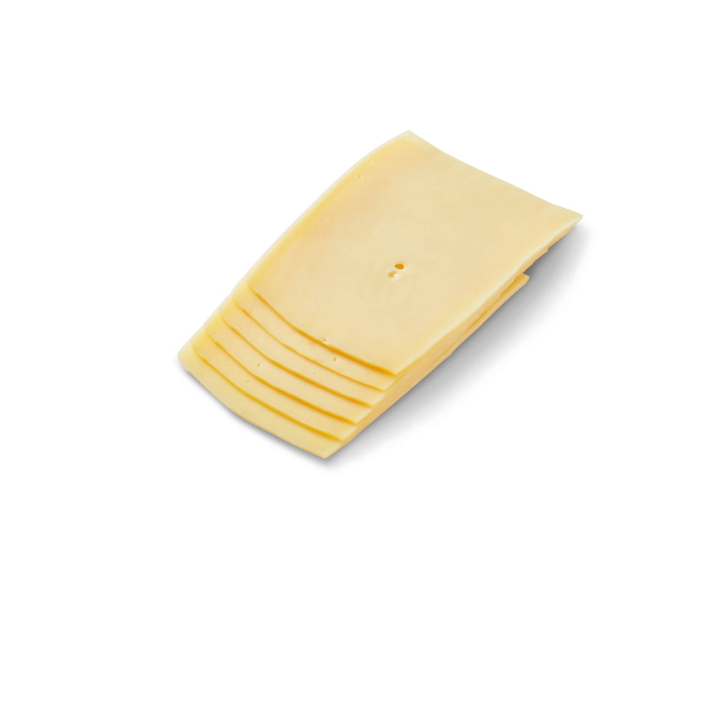 Gouda cheese, pre-sliced for convenience. Smooth, mild, and slightly nutty in flavor, it is ideal for sandwiches, burgers, and ready-to-serve meals. Packaged for bulk or professional use, offering consistent quality and ease of handling.