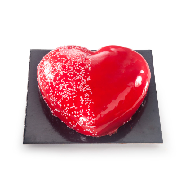 A heart-shaped cake combining rich chocolate layers with creamy strawberry filling, finished with a glossy red glaze. Sweet, romantic, and perfect for Valentine’s Day.