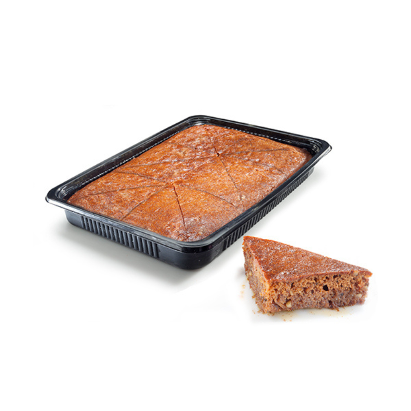 Ingredients: Walnut cake mixture [wheat flour, sugar, dexrose, starch, egg powder, leavening agents , salt, rice four, stabilisers , emulsifiers , cinnamon, caramelized sugar, thickener: sodium alginate, preservative: calcium propionate], Water, Sugar, Glucose syrup (sulphur dioxide), Pasteurized egg, Invert sugar, Vegetable oil (sunflower), Walnut, Lemon, Grated cinnamon.