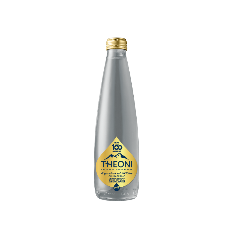 THEONI Natural Mineral Water is bottled in a practical 330ml glass bottle and is available in packs of 24. It springs at an altitude of 1100 meters, just for you.